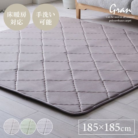 ラグ ラグマット カーペット 185×185cm 正方形 防音 滑り止め 洗える 洗濯可能 床暖房対応 ウレタン 極厚 厚手 絨毯 人気 おすすめ グラン / グリーン / -ART