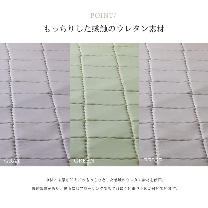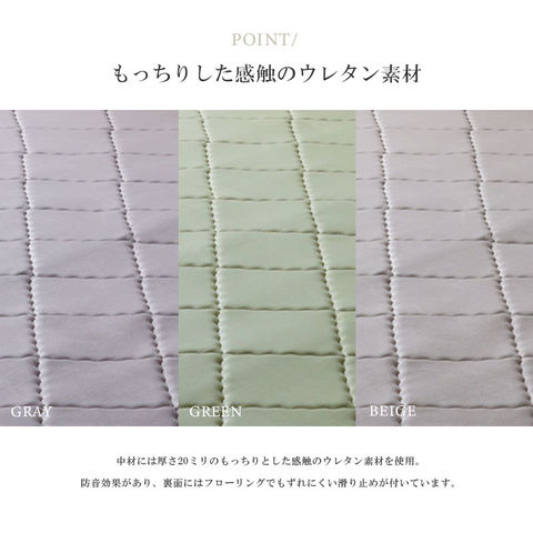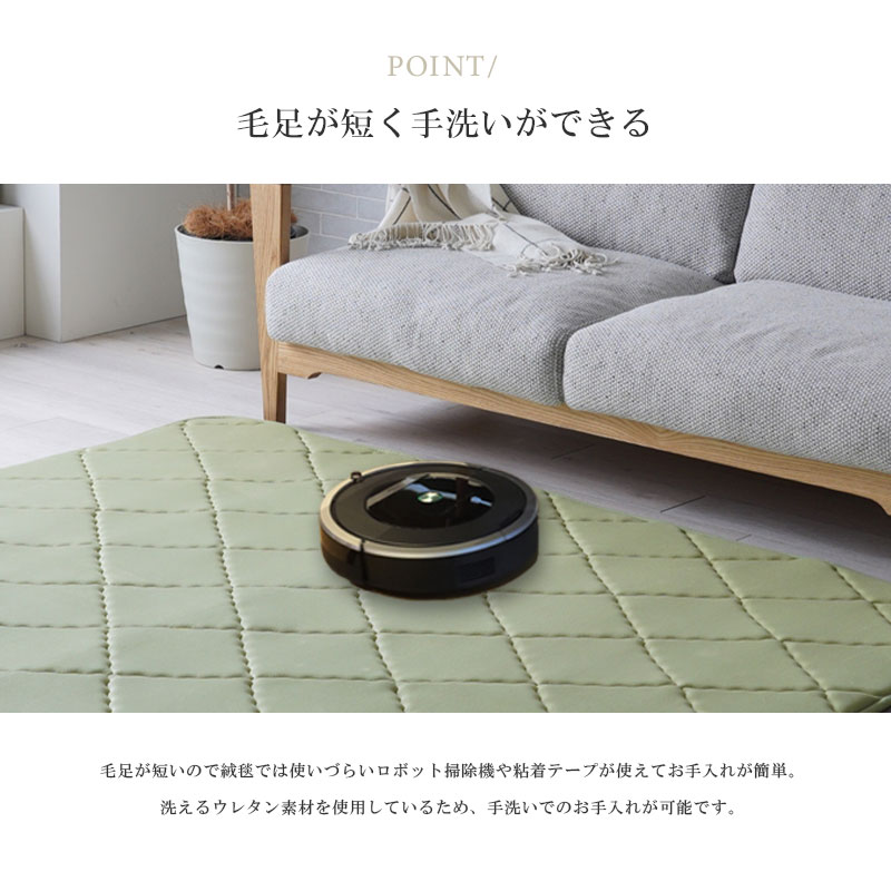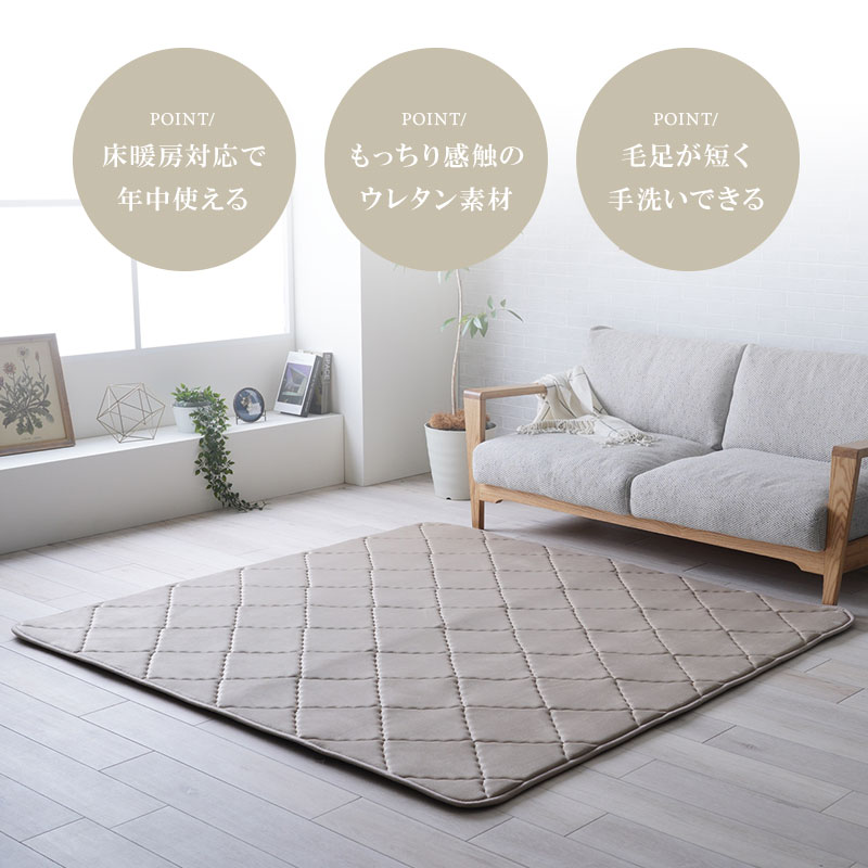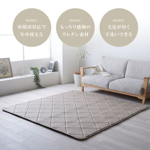 | 特徴 | ・床暖房対応で年中使える ・もっちり感触のウレタン素材 ・毛足が短く手洗いができる |