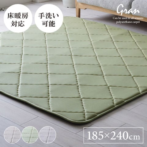 ラグ ラグマット カーペット 185×240cm 正方形 防音 滑り止め 洗える 洗濯可能 床暖房対応 ウレタン 極厚 厚手 絨毯 人気 おすすめ グラン / グリーン / -ART
