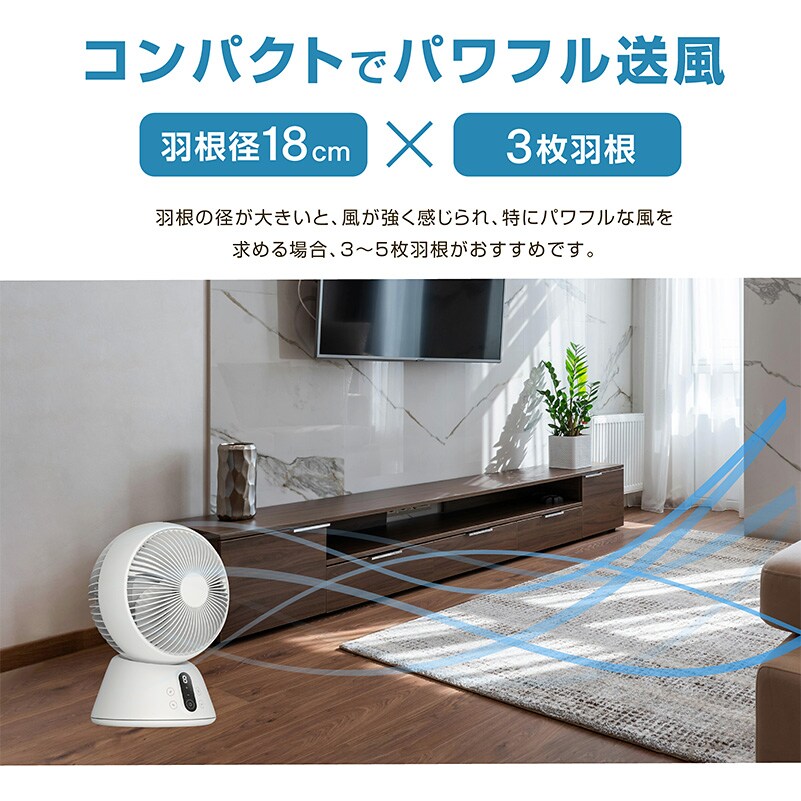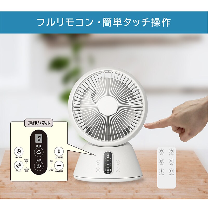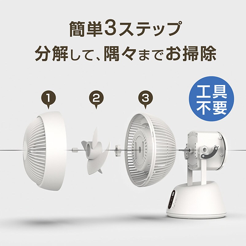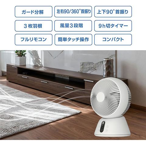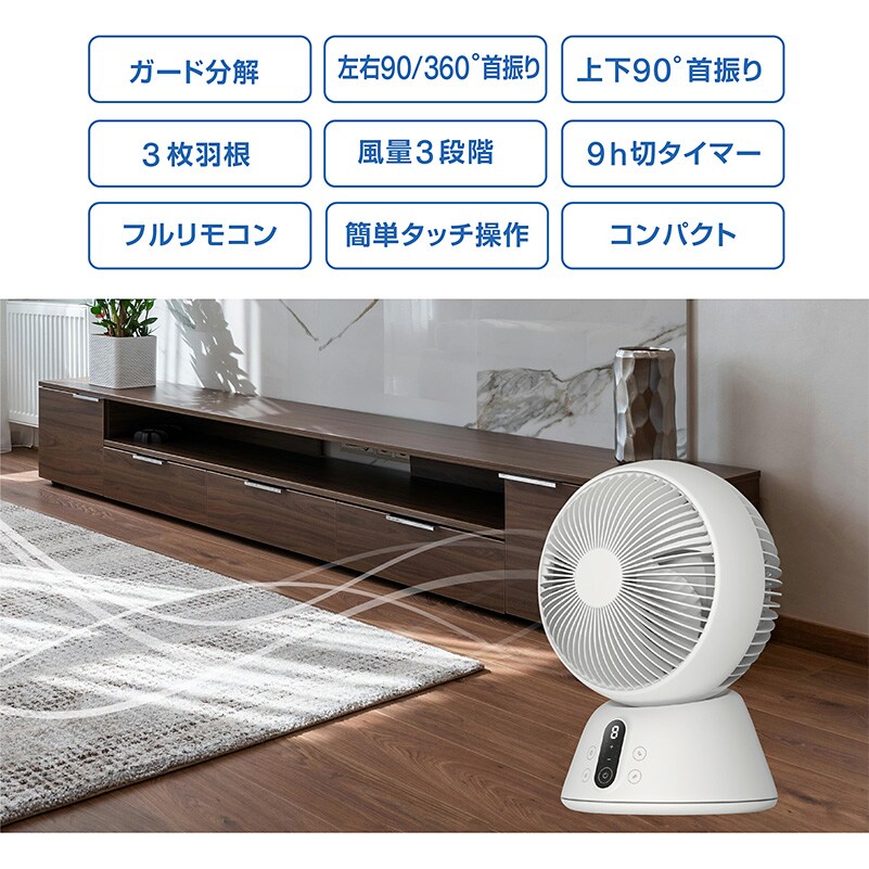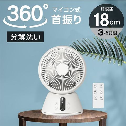 360°首振り 分解して清潔 上下左右首振り サーキュレーター 扇風機 リモコン付き オフタイマー付 風量調節 3段階