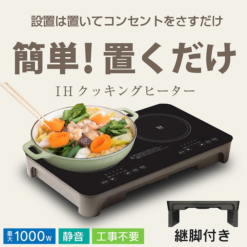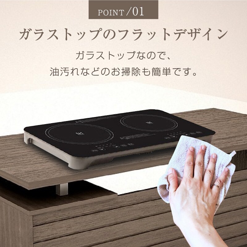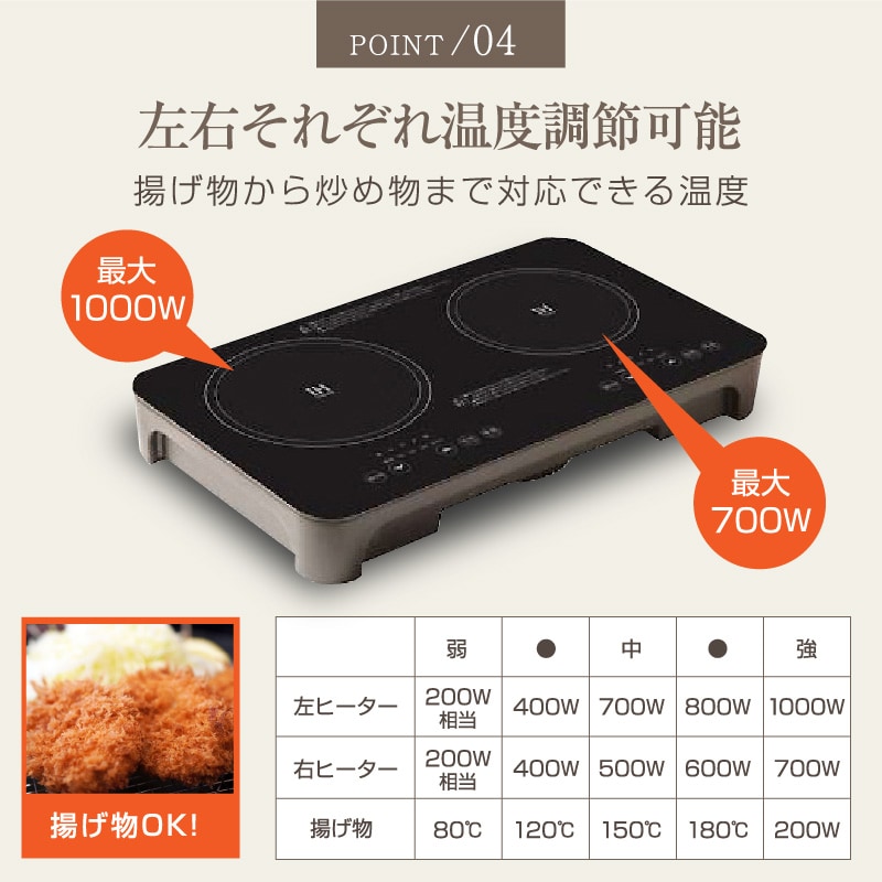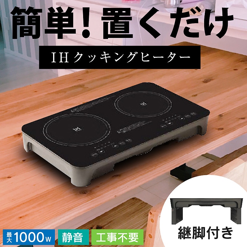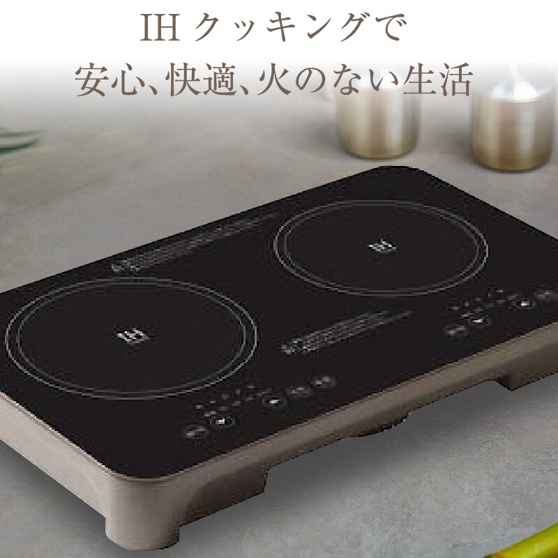 卓上 IH クッキングヒーター 2口 工事不要 ih コンロ 2口コンロ 2口IH 薄型 静音 簡単設置 IH調理器 揚げ物 煮込み / ブラック / -ART