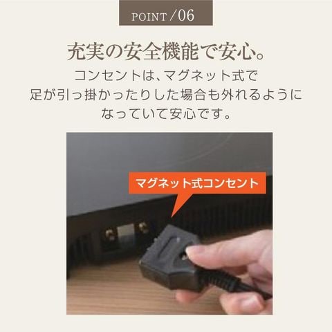 | 特徴 | ・お洒落なブラック家電 ・コンパクトながら2口搭載 ・安心安全のマグネット式電源コード ・継脚付き(約10cm高さ16cm) |