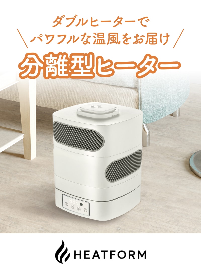 分離型 セラミックヒーター 電気ヒーター 節電 遠赤外線 小型 ミニヒーター あったかグッズ 冷え対策 暖かい HEATFORM ヒートフォーム SKJ-RK90SH / ホワイト / -ART
