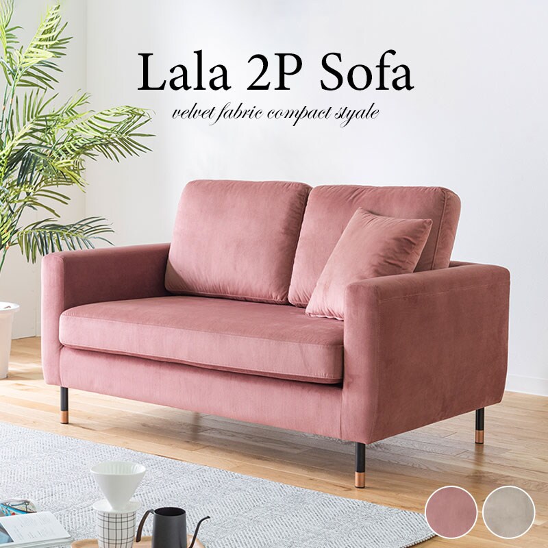 ソファ ベルベット生地 ローソファ 2人掛け 幅121cm 大人かわいい 姫系 韓国インテリア 柔らかい ふかふか ピンク グレージュ Lala ララ / グレージュ / -ART
