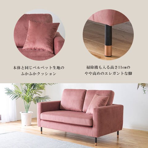| 特徴 | ・可愛さも大人っぽさも叶えるベルベット調ソファ ・本体と同じベルベット生地のふかふかクッション ・掃除機も入る高さ11cmのやや高めのエレガントな脚 ・ゆったり座れる余裕とほどよいコンパクトサイズ ・ふんわり柔らかめの生地 ・“大人かわいい”2色展開 ・エレガントな脚は取り外し可能でフロアタイプとしても |