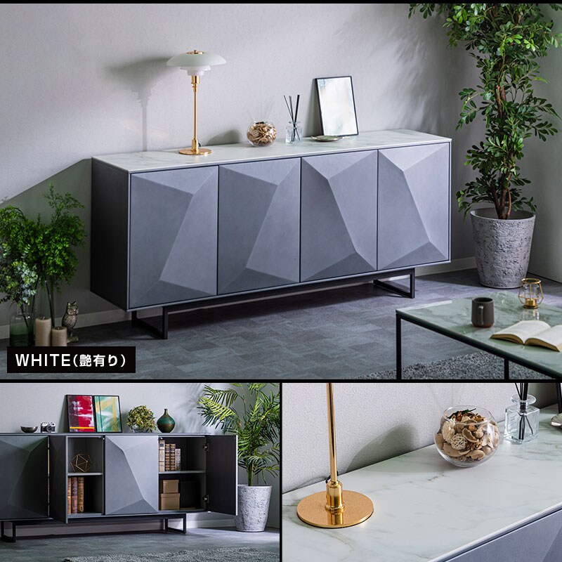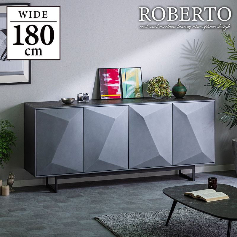 キャビネット サイドボード チェスト 収納棚 幅180cm セラミック 高級 耐久性 リビング 大型 大人 モダン クール おしゃれ ROBERTO ロベルト / ホワイト / -ART