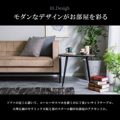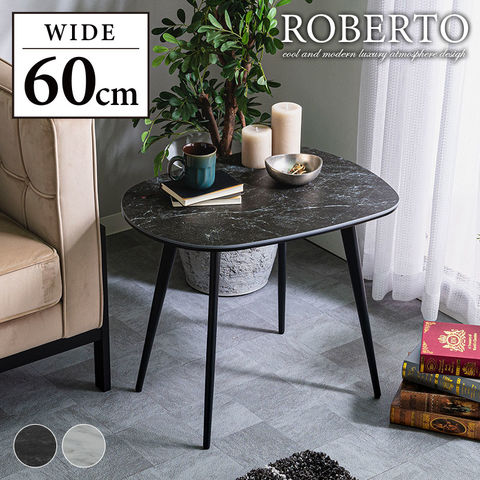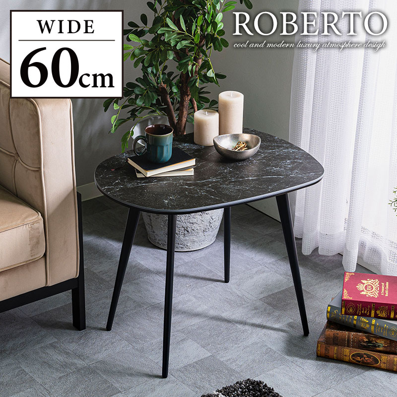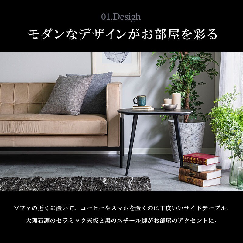サイドテーブル コーヒーテーブル ナイトテーブル 幅60cm 円形 セラミック 高級 大理石調 大理石柄 大人 モダン クール おしゃれ ROBERTO ロベルト / ブラック / -ART
