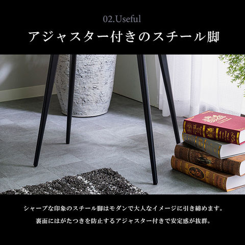 | 特徴 | ・大理石調のセラミック天板と黒のスチール脚がお部屋のアクセントに ・高級感と耐久性に優れたセラミックを贅沢に6ミリ使用 ・艶ありホワイトと艶なしブラックの2色展開 ・アジャスター付きのスチール脚 |
