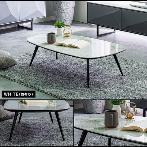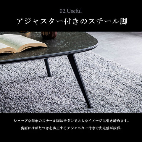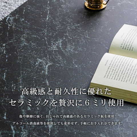 特徴 ・大理石調のセラミック天板と黒のスチール脚がお部屋のアクセントに