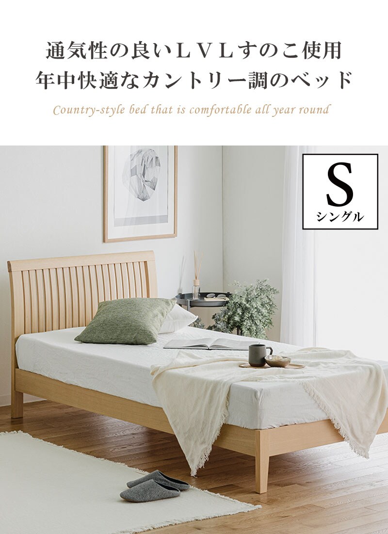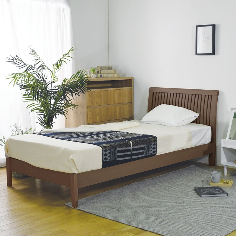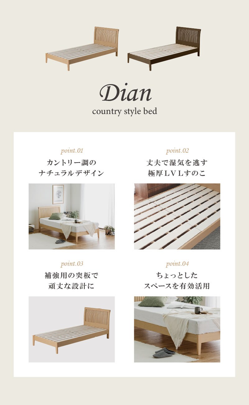 ベッド シングル S カントリー調 フレーム ベッドフレーム すのこ LVL 木目 ダイアン / ベッド:ブラウン / マットレス:ホワイト / (三つ折り圧縮ポケットマットレス付き) -ART