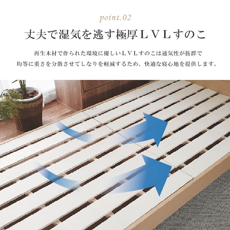| 特徴 | ・カントリー調のナチュラルデザイン ・丈夫で湿気を逃がす極厚LVLすのこ ・補強用の突板で丈夫な設計に ・ちょっとしたスペースを有効活用 |