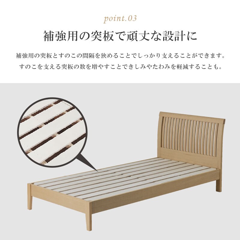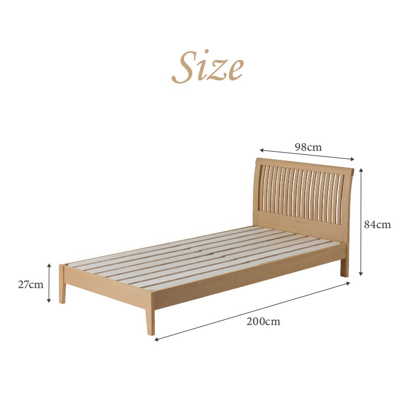 | 注意 | ・こちらは本体のみの販売です。マットレス、小物は付属しません。 ・実物に近い状態で撮影していますが、撮影時の光の加減やお客様のPC設定により若干の色合いが異なる場合がございます。 ・曲線部分や若干の個体差により、多少の誤差が生じることがございます。予めご了承ください。 |
