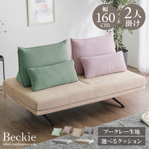 ソファ ソファー 選べる背クッション付き ブークレー ブークレ 幅160cm 2人掛け 2P sofa ソファベッド ソファーベッド ファブリック 大型 ベッキー / ソファカラー:ベージュ / 背クッションカラー:ライトグリーン×ピンク / -ART