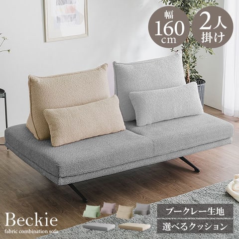 ソファ ソファー 選べる背クッション付き ブークレー ブークレ 幅160cm 2人掛け 2P sofa ソファベッド ソファーベッド ファブリック 大型 ベッキー / ソファカラー:ダークグレー / 背クッションカラー:ベージュ×ライトグレー / -ART