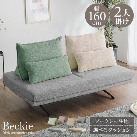 ソファ ソファー 選べる背クッション付き ブークレー ブークレ 幅160cm 2人掛け 2P sofa ソファベッド ソファーベッド ファブリック 大型 ベッキー / ソファカラー:ダークグレー / 背クッションカラー:ライトグリーン×ベージュ / -ART