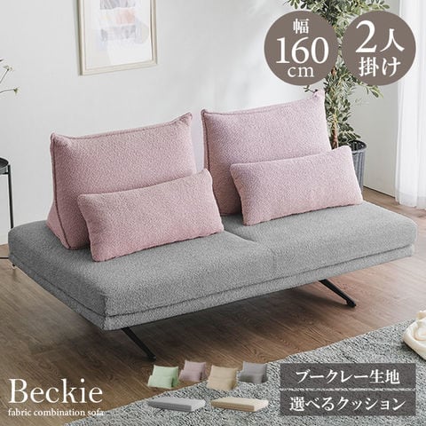 ソファ ソファー 選べる背クッション付き ブークレー ブークレ 幅160cm 2人掛け 2P sofa ソファベッド ソファーベッド ファブリック 大型 ベッキー / ソファカラー:ダークグレー / 背クッションカラー:ピンク×ピンク / -ART