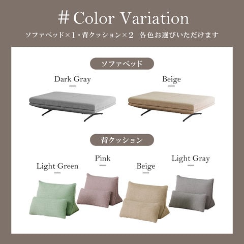 | 背クッションカラー | ライトグリーン、ピンク、ベージュ、ライトグレー |