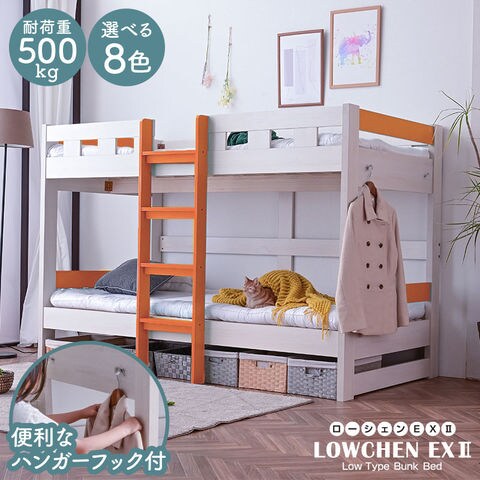 二段ベッド 2段ベッド 耐荷重500kg ロータイプ 2段ベット 大人用 子供 コンパクト ローシェンEX2 本体のみ / ホワイト×グリーン / -ART