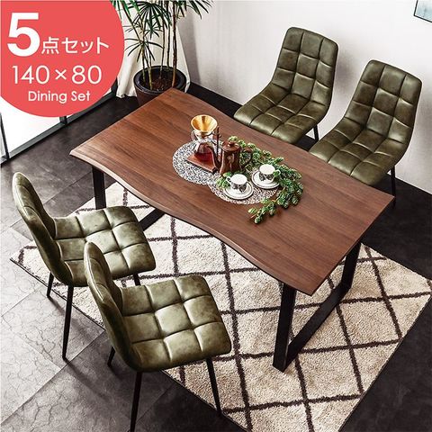 ダイニングテーブルセット 4人掛け 5点セット 140cm テーブル おしゃれ ヴィンテージ レザー 調 一枚板風 メントス2 / テーブル:ウォールナット / チェア:グリーン / -ART