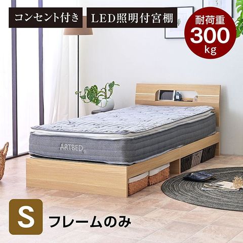 宮棚 ライト コンセント付き ベッド フレーム シングル ベット おしゃれ すのこベッド 木製ベッド LEN-レン フレームのみ / ナチュラル / -ART