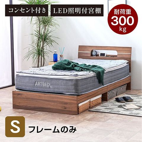 宮棚 ライト コンセント付き ベッド フレーム シングル ベット おしゃれ すのこベッド 木製ベッド LEN-レン フレームのみ / ウォールナット / -ART