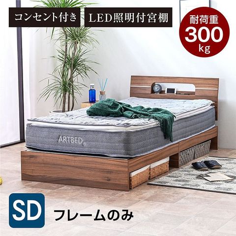 宮棚 ライト コンセント付き ベッド フレーム セミダブル ベット おしゃれ すのこベッド 木製ベッド LEN-レン フレームのみ / ウォールナット / -ART