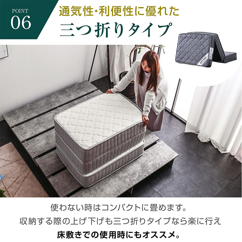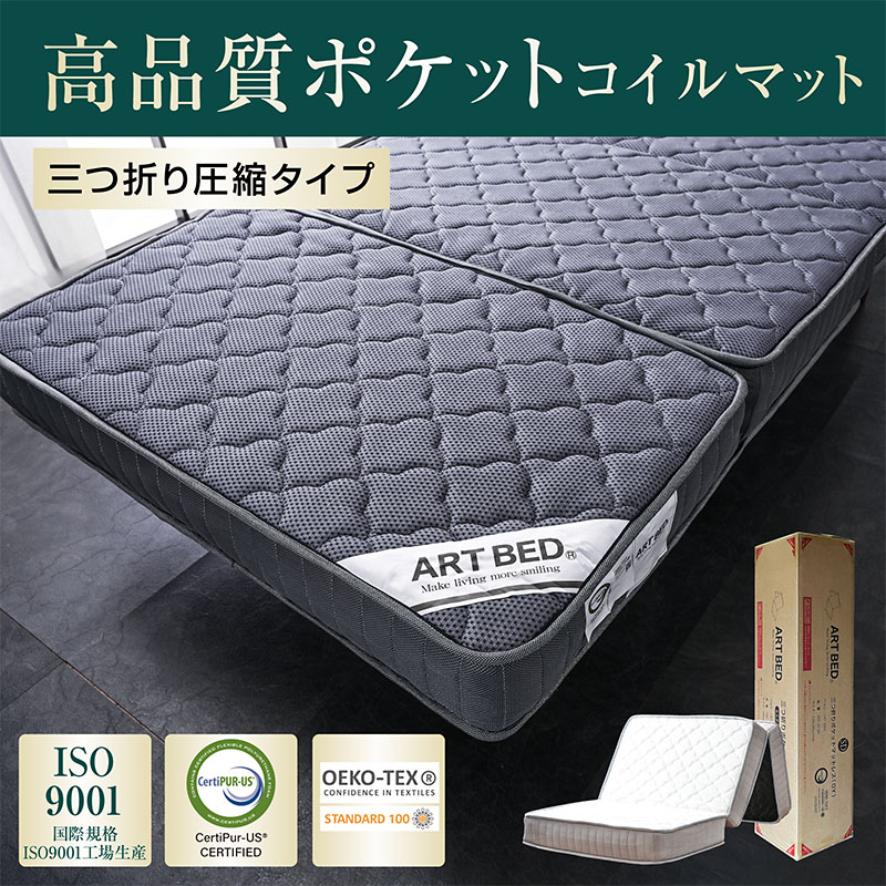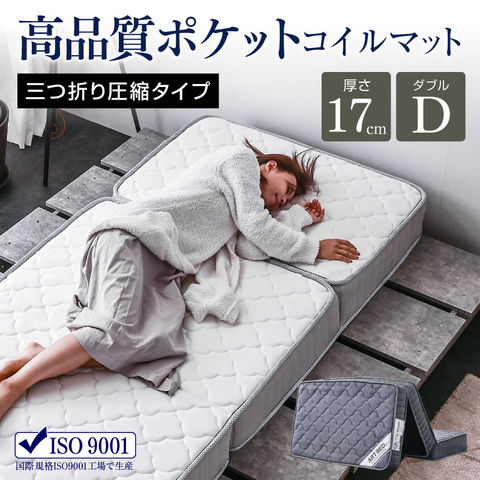 マットレス ダブル 三つ折り 折りたたみ ポケットコイル ベッドマットレス 厚さ17cm マット 圧縮マットレス 3つ折り 快眠 / グレー / -ART