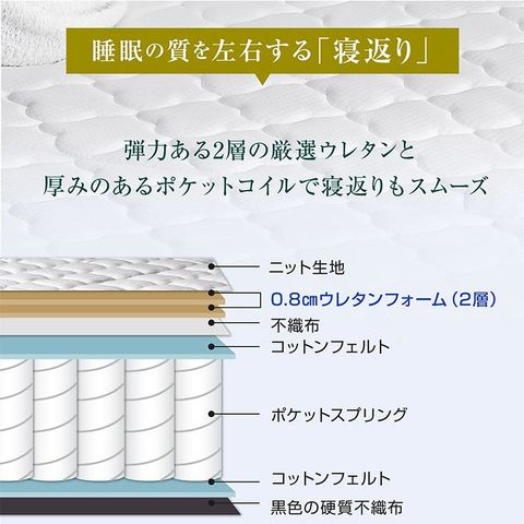 | 材質 | 外装生地:100%ポリエステル 中材:ウレタン、ポケットコイルスプリング |