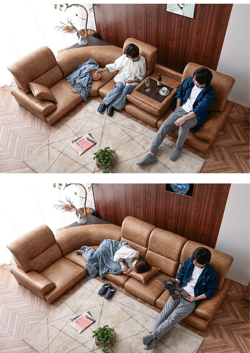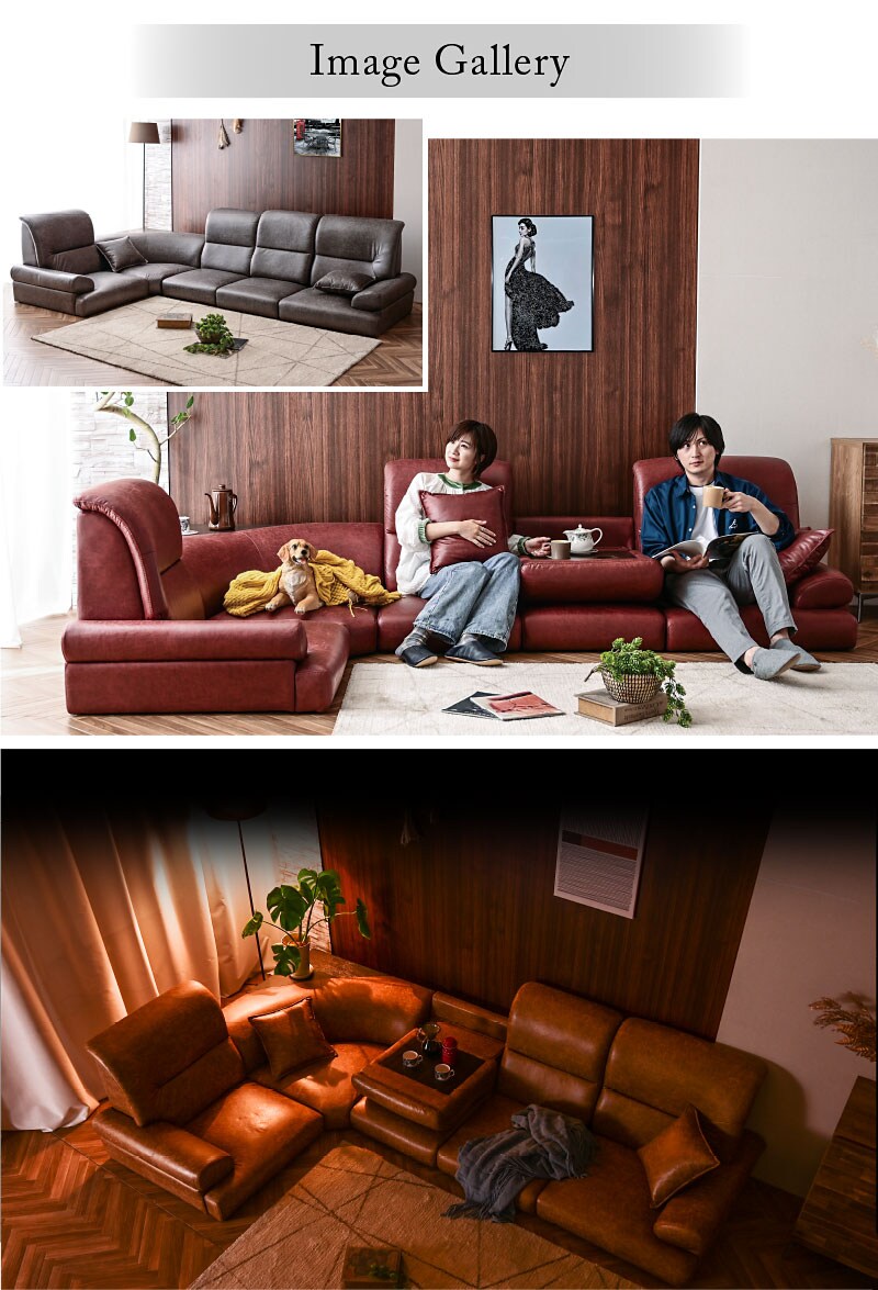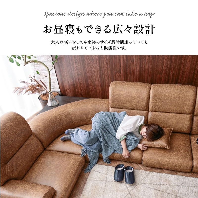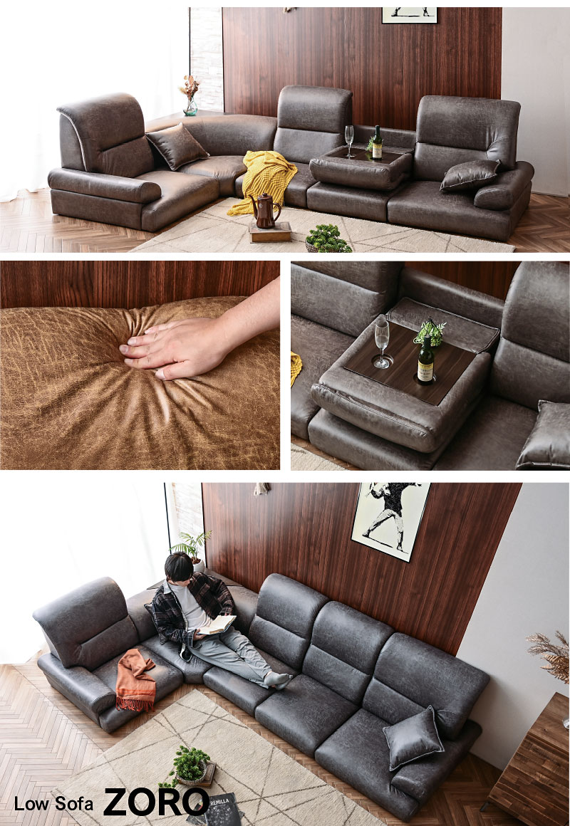 \ハイグレードな佇まいの贅沢ソファ/ ・座面の高さが約16cmと低いのでお子様やペットがいるご家庭でも安心 ・日本人好みのロータイプスタイルは床に近い暮らしで安らげる ・背もたれはしっかりと安定感があり快適な姿勢をサポート ・枕代わりにもなる腕を休めるアームレスト ・ウレタンフォームがたっぷり入った肉厚な座面クッション ・座面の奥行は約52cmと深く腰掛けれる ・大人が横になっても余裕のサイズで長時間座っても疲れにくい ・間接照明や観葉植物が置けるコーナーテーブル ・背もたれを倒すだけで使えるカップホルダー付きテーブル ・本革のような風合い、布のような肌触り、傷に強いファブリック生地 ・5つのパーツを使って自由にレイアウトが可能 ・ソファ底は滑りにくいロータイプ専用脚付き ・くつろぎ必須アイテムのクッションが2個付き |