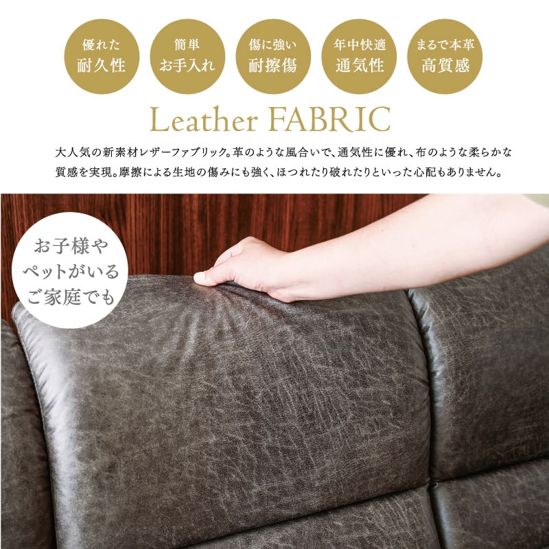 | 材質 | ・傷に強いレザーファブリック ・シリコンフィル、ウレタン、合板、ウィービングベルト |
