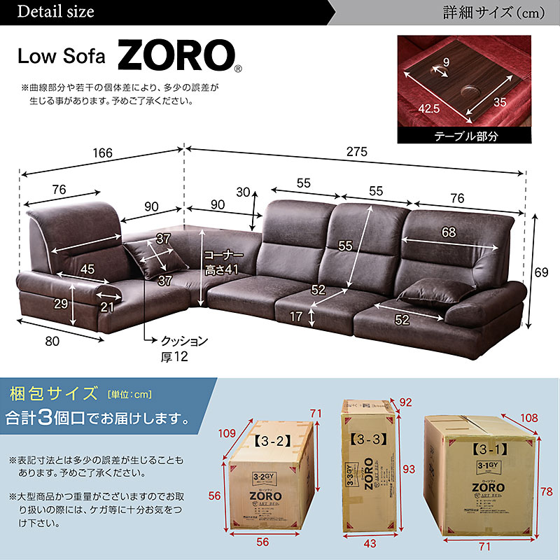 (3-1)71×108×78(cm) (3-2)56×109×56・71(cm) (3-3)43×92×93(cm) |