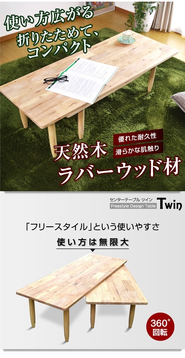 ローテーブル センターテーブル 折りたたみ ツイン(Twin 37002) 万能テーブル 木製 天然木 回転 書道 学習塾 コンパクト テレワーク / ナチュラル / -ART