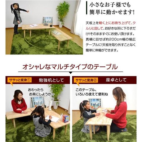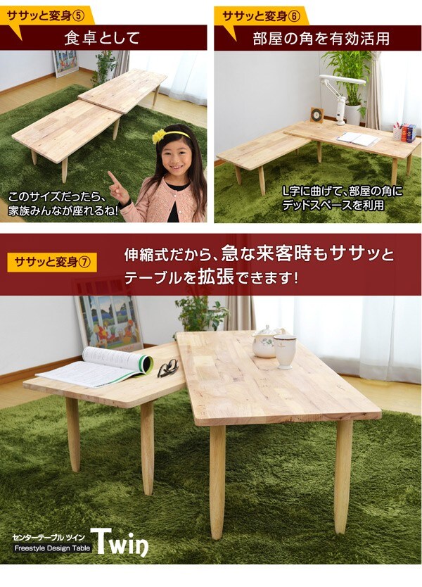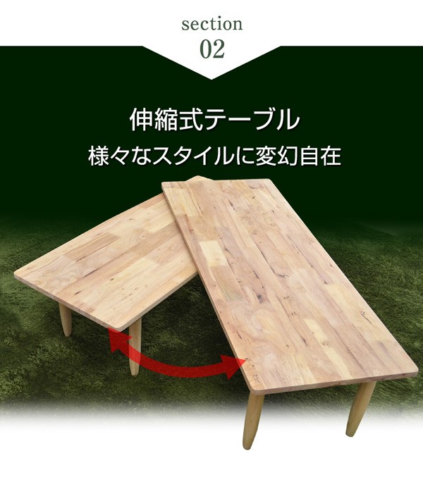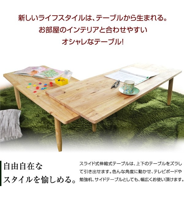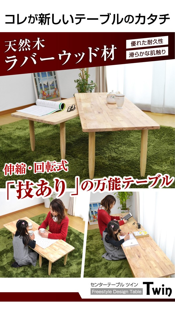 | 特徴 | 【輸入品】【組み立て品】 ・あたたかみのある天然木使用 ・360度回転式の入れ子状テーブル ・お部屋のセンターにつとめるのにふさわしいテーブル ・伸縮式テーブル様々なスタイル変幻自在 ・丸仕上げで安心安全に考慮 |