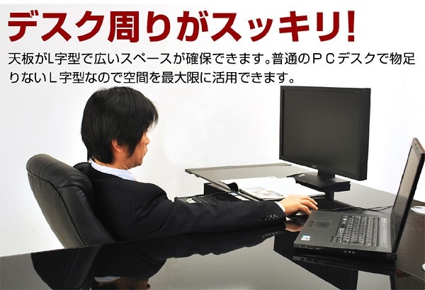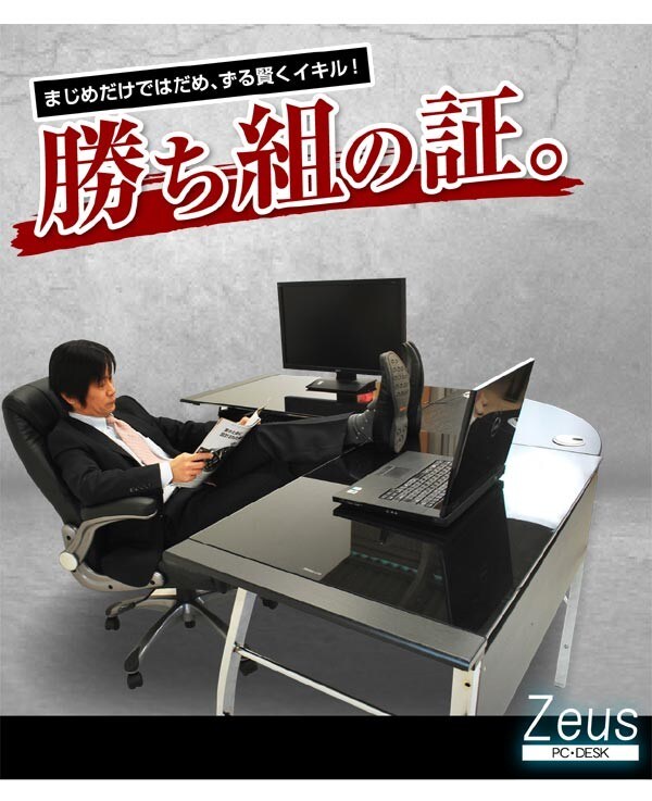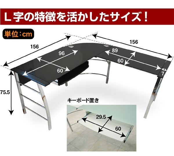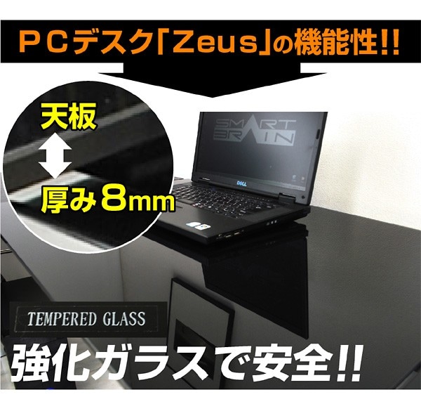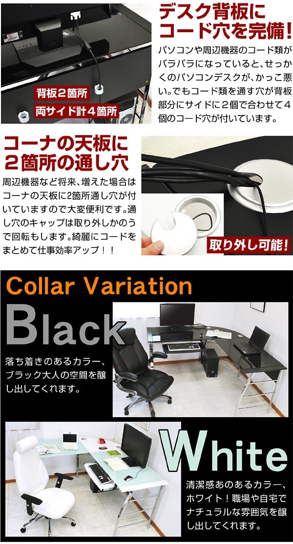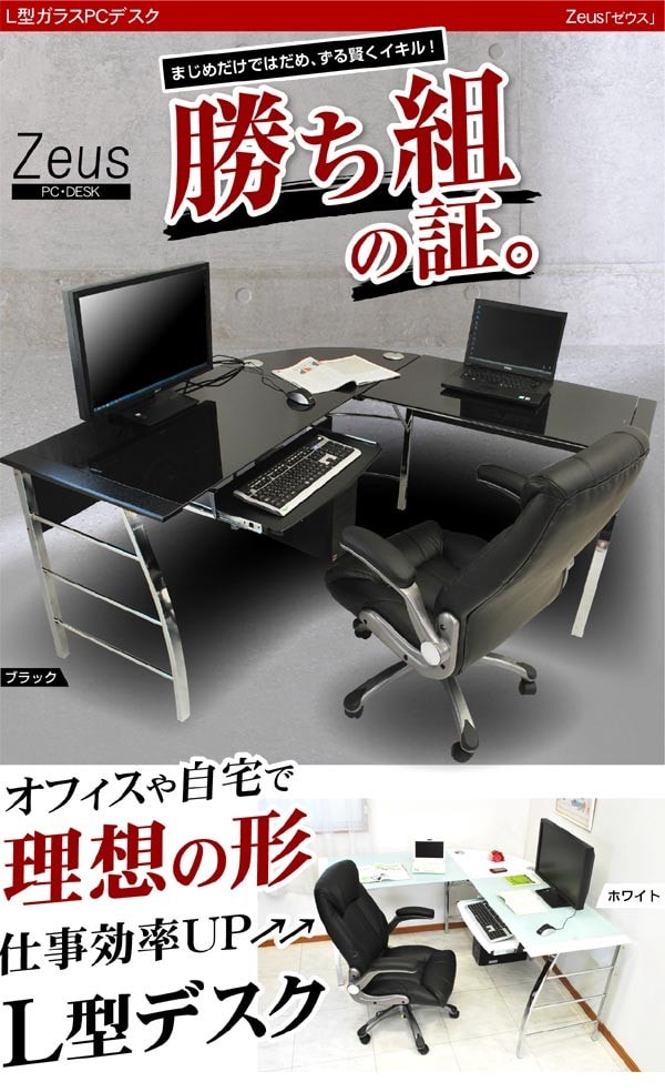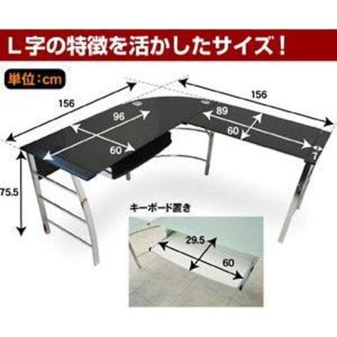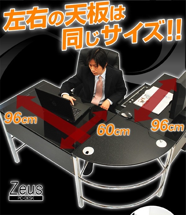 パソコンデスク ガラスPCデスク L型3点セット(CT-1040) ゼウス L型 オフィスデスク ワーキングデスク テレワーク デスク / ブラック / -ART
