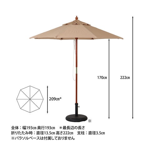 天然木パラソル 単品 210cm 日よけ 日除け UVカット 軽量 木製 アウトドア用品 テラス 庭 アウトドア レジャー おしゃれ おすすめ 人気 / アイボリー / -ART