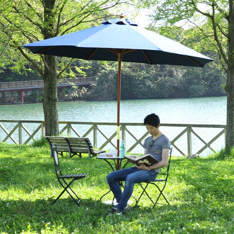 天然木パラソル 単品 210cm 日よけ 日除け UVカット 軽量 木製 アウトドア用品 テラス 庭 アウトドア レジャー おしゃれ おすすめ 人気 / ネイビー / -ART