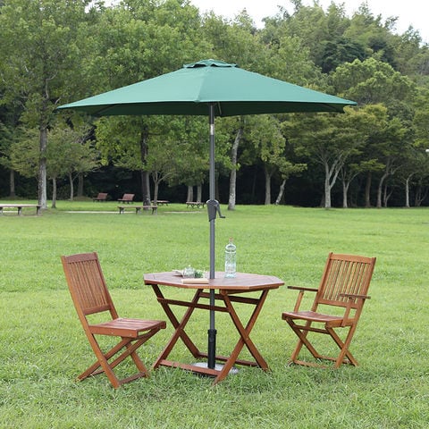 | 特徴 | ・温かみのある天然木を使用したシンプルデザイン ・UVカット率は99.5% ・クランクを回すだけで開閉 ・チルト機能を搭載 ・木製のパラソルに比べて軽量 アルミ支柱は強度が高く、風が強い日でも安心 |