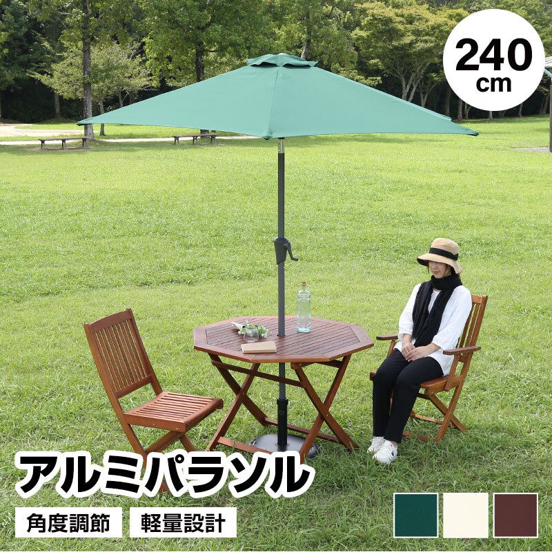 アルミパラソル 単品 240cm 日よけ 日除け UVカット 軽量 チルト機能 アウトドア用品 テラス 庭 アウトドア レジャー おしゃれ おすすめ 人気 / グリーン / -ART