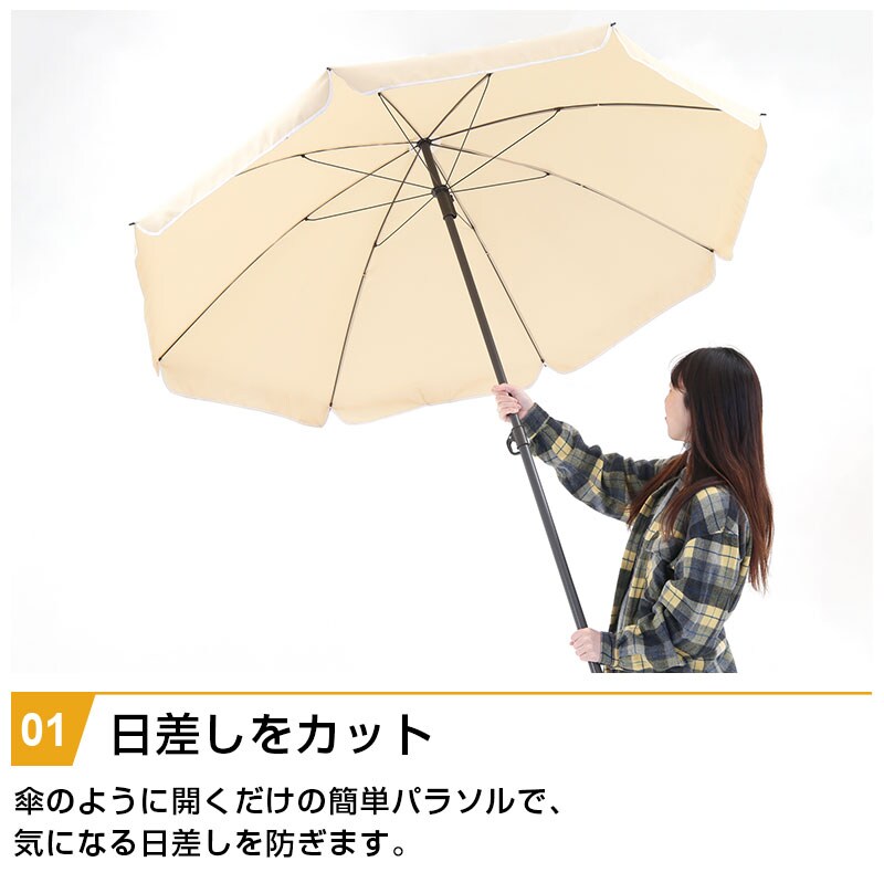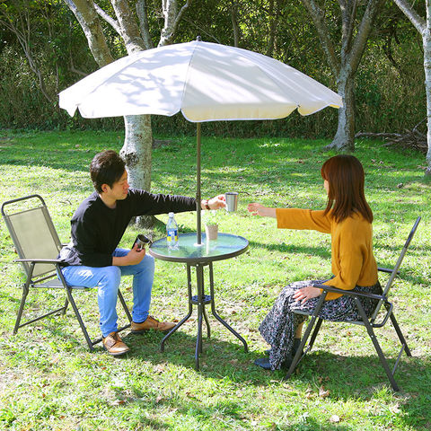 | 特徴 | ・簡単パラソルで気になる日差しをカット ・ゆったり使用できる大きな天板 ・おしゃれな波形ガラス ・通気性も抜群のメッシュタイプ ・持ち運びしやすい折りたたみ式チェア |