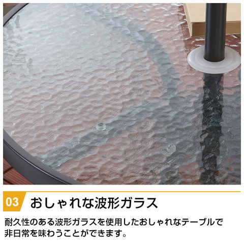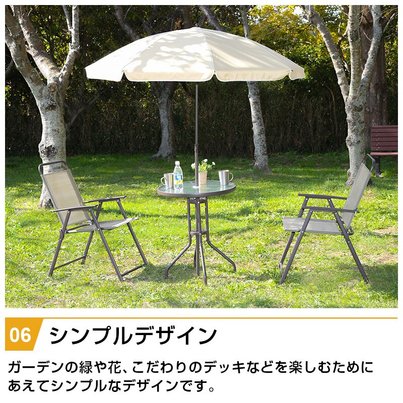 | セット内容 | 波形ガラステーブル、チェア2脚、パラソル |