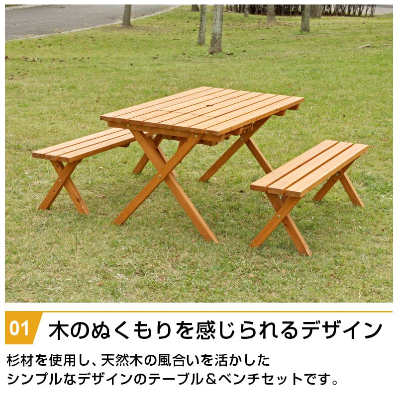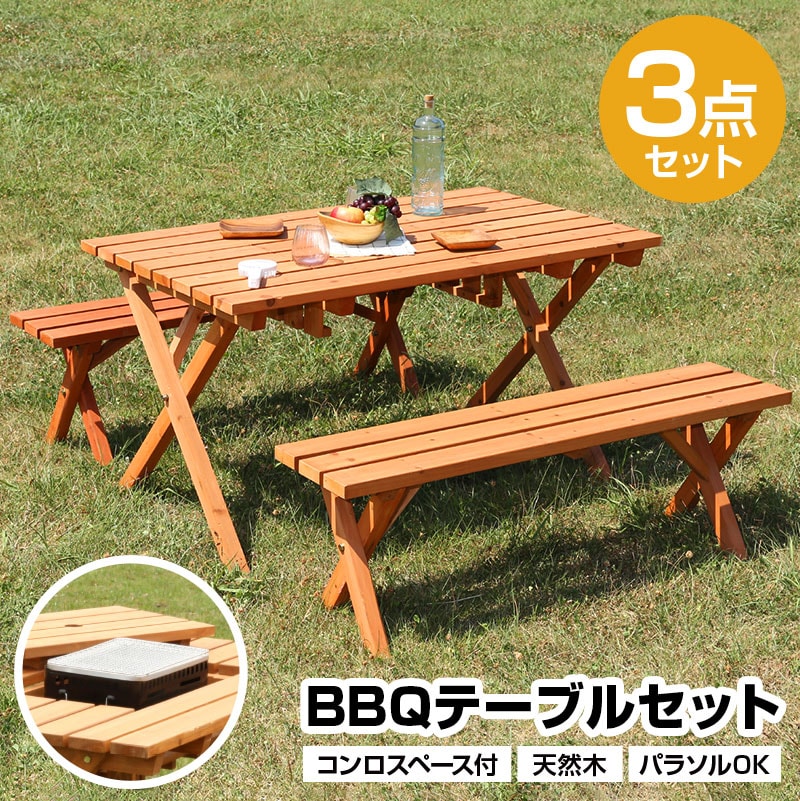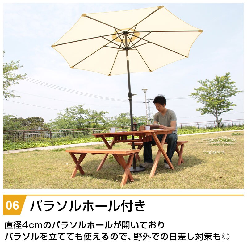 BBQテーブル&ベンチセット コンロスペース付き パラソル 3点 天然木 杉 スギ 軽量 アウトドア用品 テラス 庭 アウトドア レジャー おしゃれ おすすめ 人気 / ナチュラル / -ART