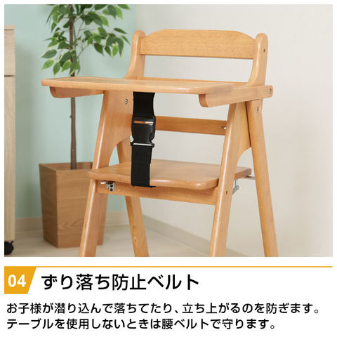 天然木折りたたみベビーチェア キッズチェア テーブル付き ベルト付き 木製 折りたたみ式 高さ調節可能 落下防止 お手入れ簡単 おしゃれ おすすめ 人気 / ブラウン / -ART