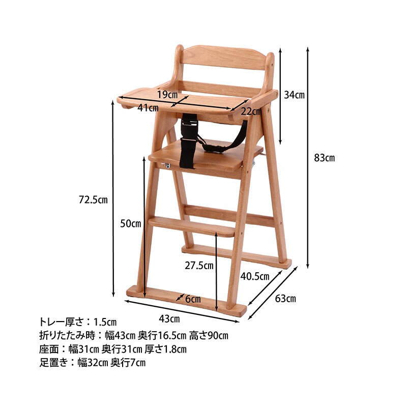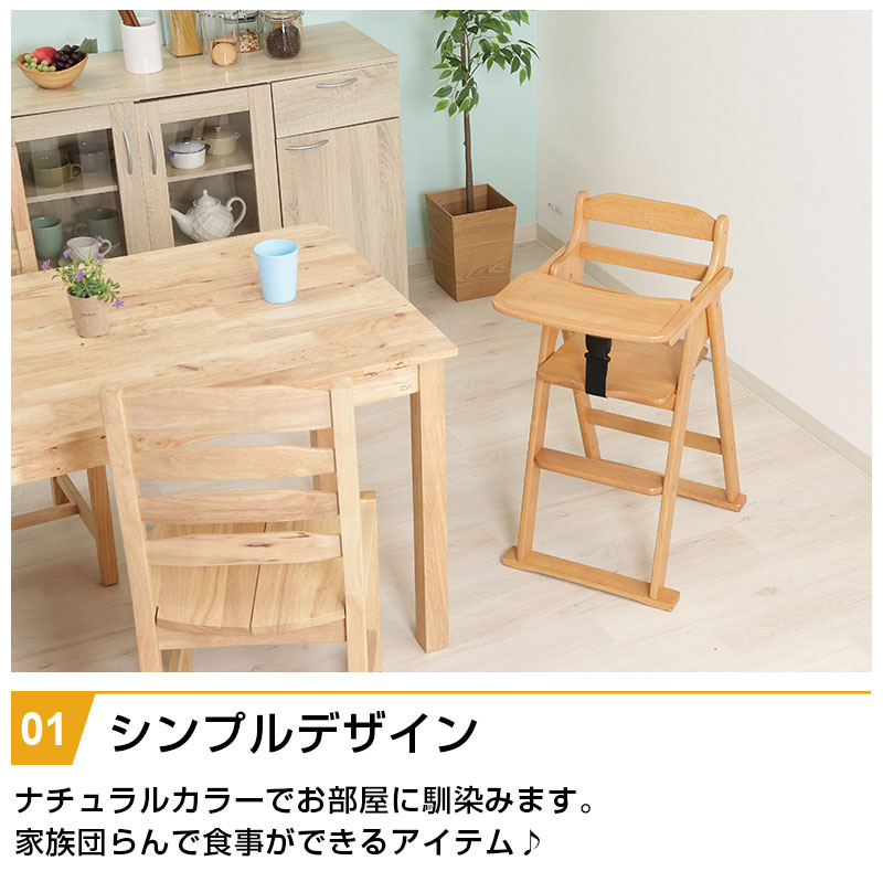 天然木折りたたみベビーチェア キッズチェア テーブル付き ベルト付き 木製 折りたたみ式 高さ調節可能 落下防止 お手入れ簡単 おしゃれ おすすめ 人気 / ナチュラル / -ART