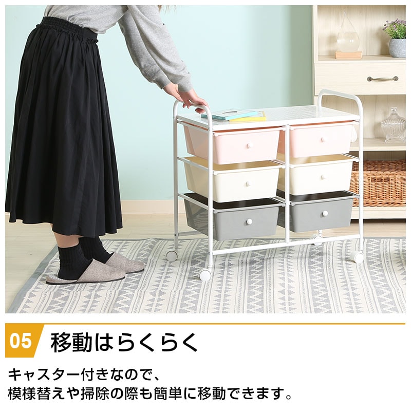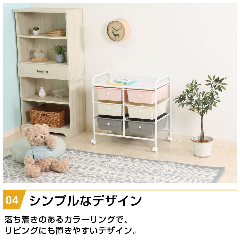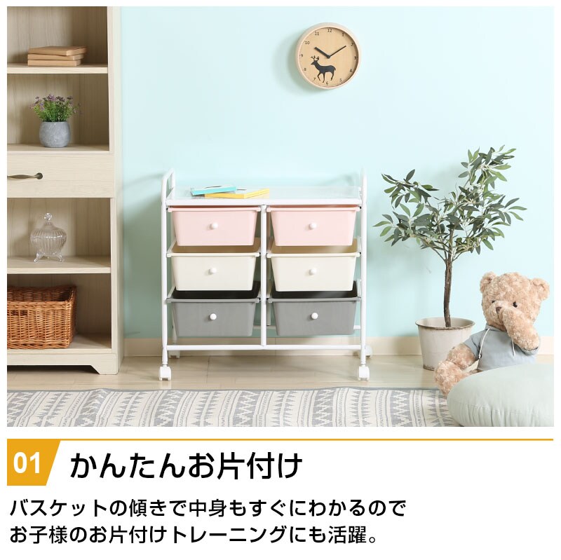 キッズラック 6マス キャスター付き 幅63cm 引出し 3段 大容量 キッズ ベビー 子供 ラック 小学生 女の子 男の子 お片付け 収納ワゴン おもちゃ収納 -ART