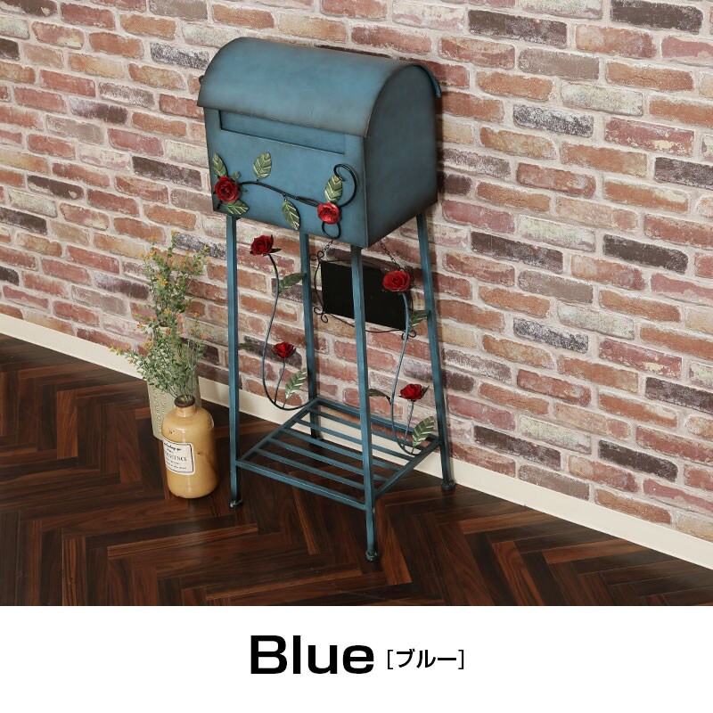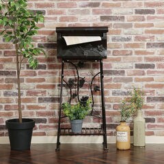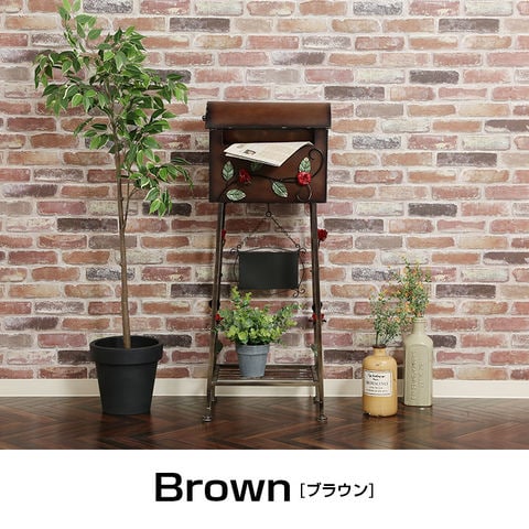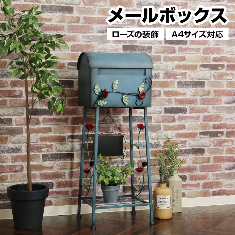 メールボックス ローズ 置き型 棚付き A4サイズ対応 ポスト 大容量 スタンドポスト スタンドタイプ ガーデン インテリア 家具 / ブラウン / -ART