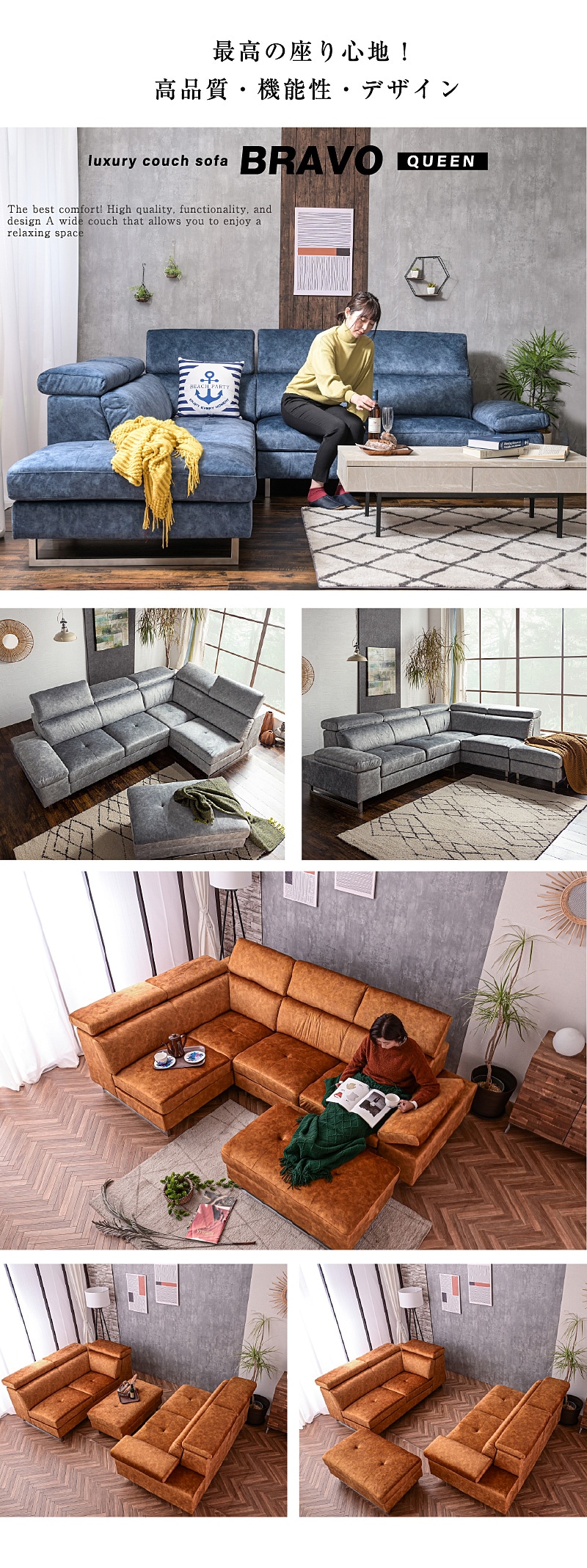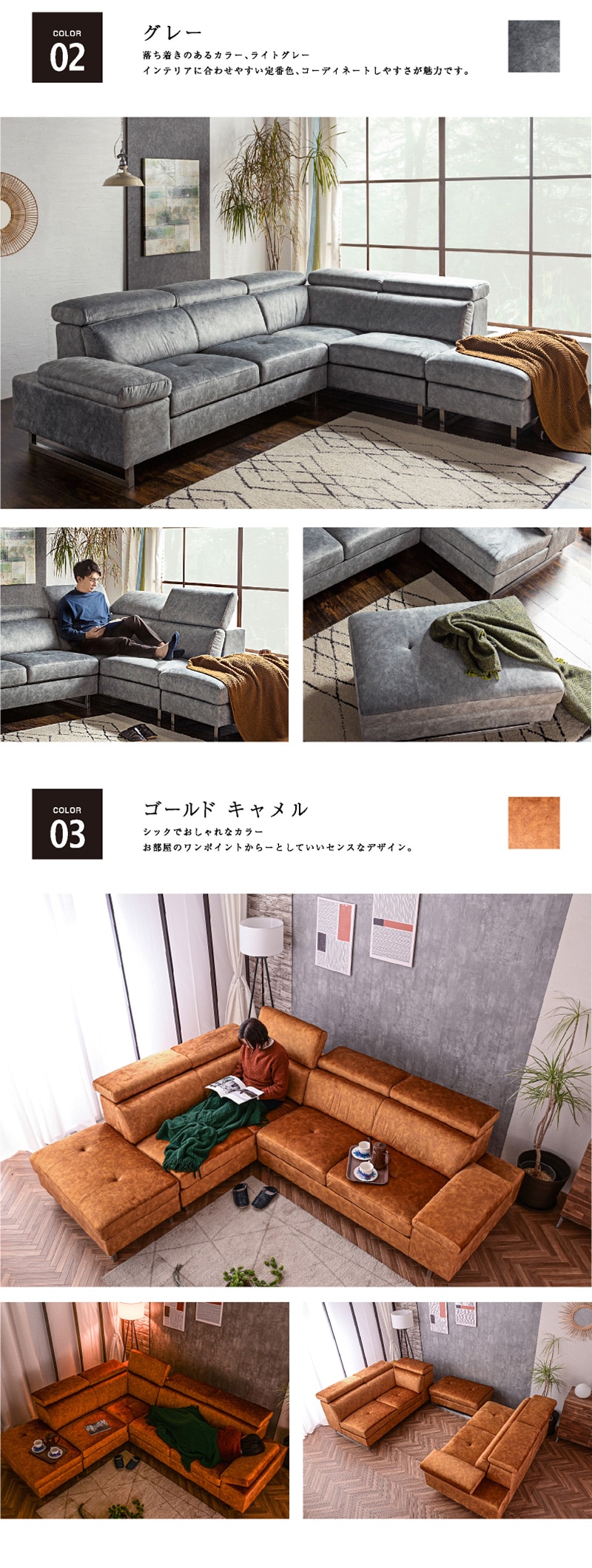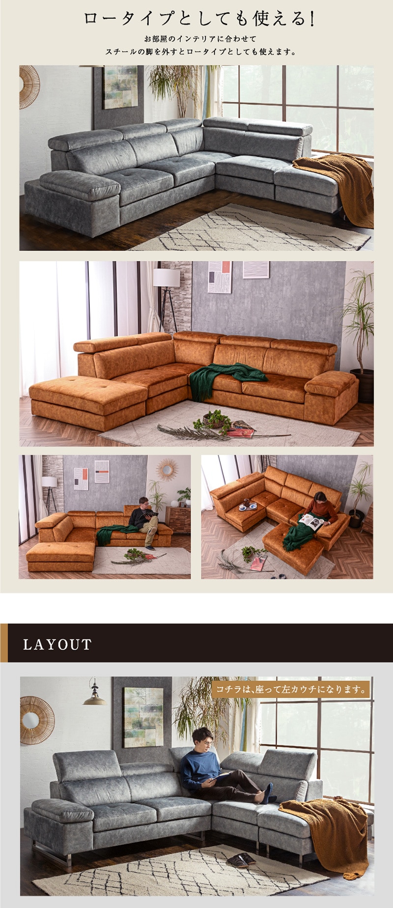 | 特徴 | ハイバック対応のコーナーカウチ。濃淡を生かしたスウェード調の生地 人気の新素材スムーステックを使用したカウチソファーです。 ヘッドレスト、アーム部分は可変ギア仕様でハイバックやローバックに対応。 脚を取ればローソフアにもなる 座面内部はウレタンフォーム、S字スプリング、ウェービングベルトで長時間座っても 疲れにくく快適な座り心地です。 好みや状況に合わせて可動できるので、ダイニングからの視界を妨げる事もありません。 |