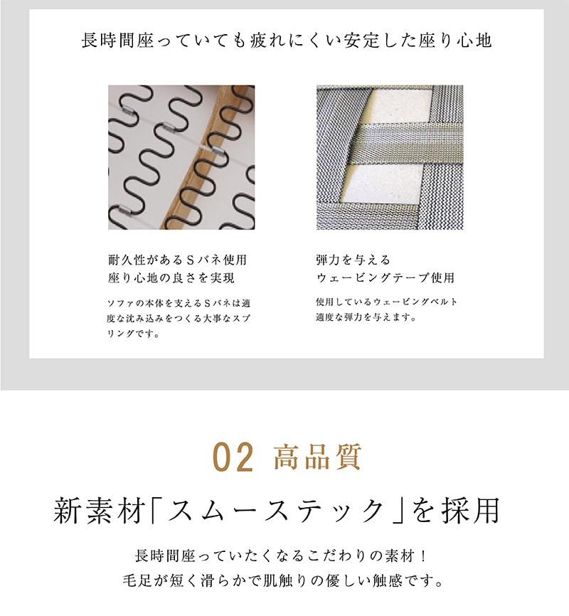 | 素材 | 新素材スムーステック ウレタンフォーム Sスプリング ウェービングベルト スチール脚 ギア可動式(ヘッドレスト/肘) |