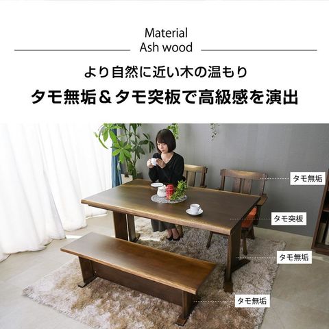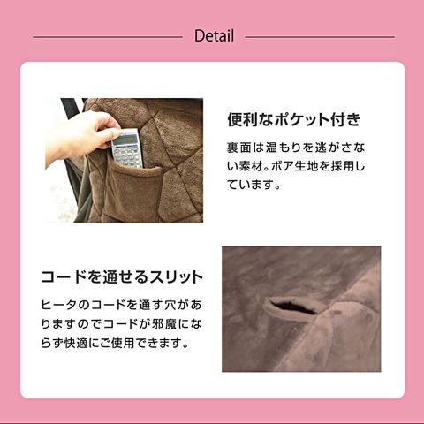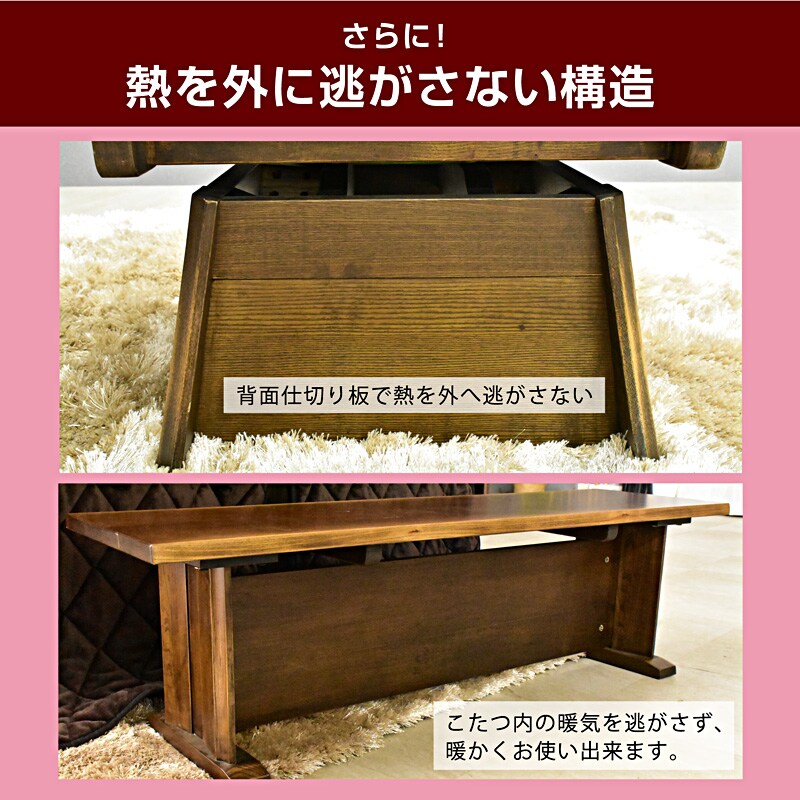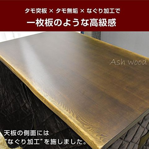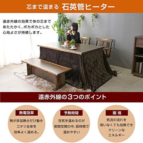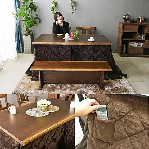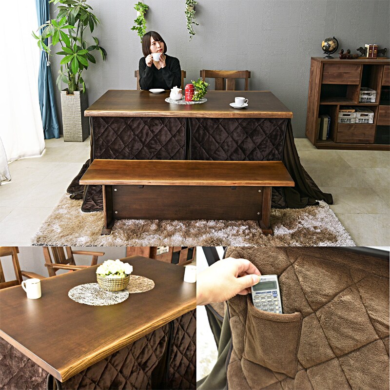 | 材質・仕様 | 【テーブル】本体:タモ突板・タモ無垢 (ダークブラウン) 【チェア】タモ無垢 座面ファブリック 【こたつ掛け布団】裏面ボア生地 (ダークブラウン) |