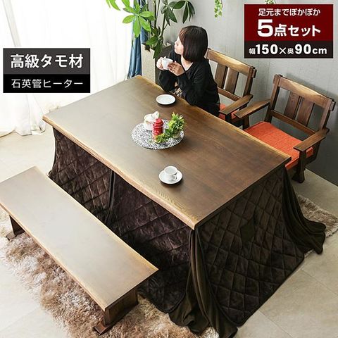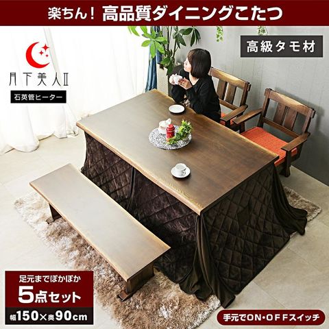 こたつ 炬燵 コタツ 150×90cm こたつ布団付 5点セット タモ無垢 長方形 ダイニング 高脚コタツ ハイタイプ 4人掛け 月下美人2 / ダークブラウン / -ART