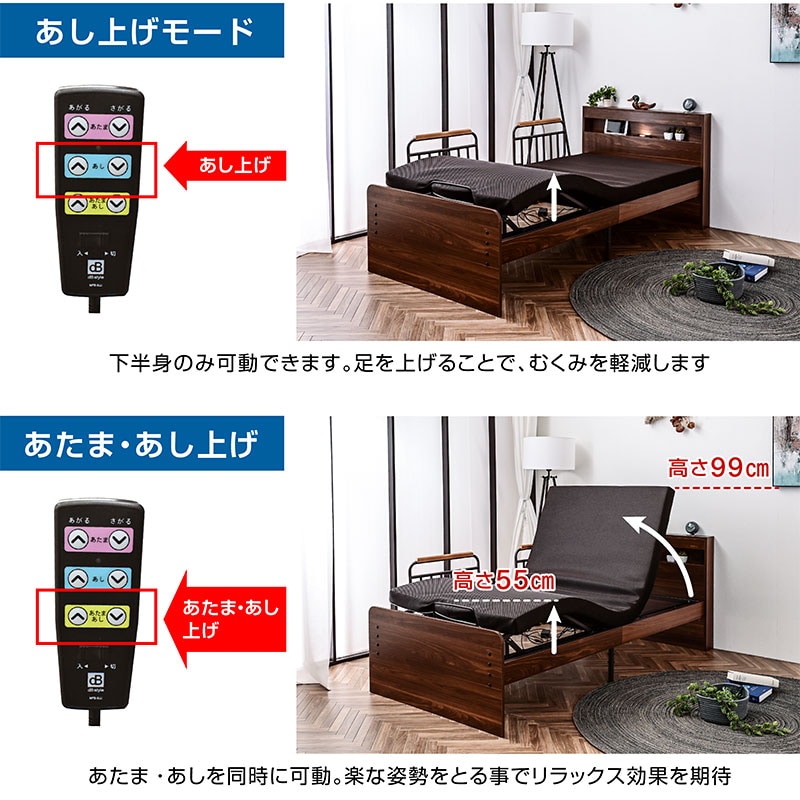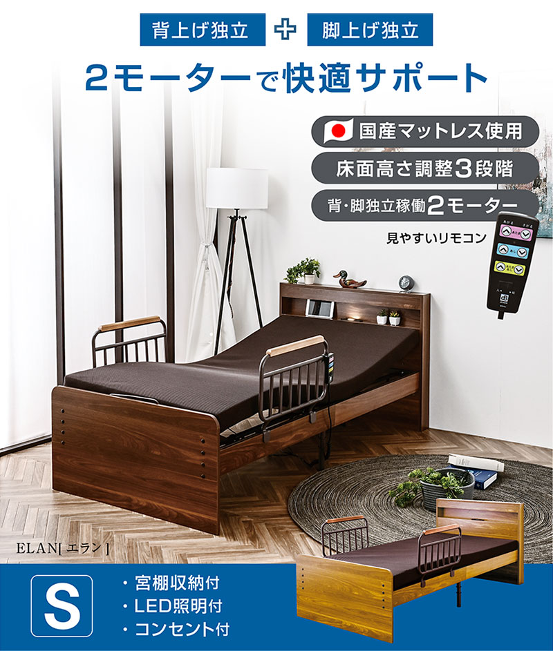 電動ベッド 介護ベッド 2モーター 宮棚 LED照明 付き シングル 国産マットレス付き 足上げ 腰痛対策 口コミ ランキング おすすめ エラン / ナチュラル / -ART